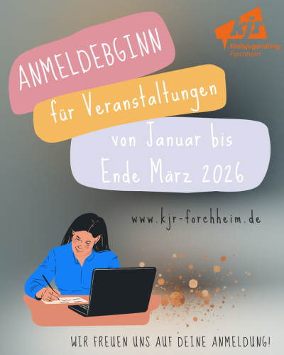 Für Veranstaltungen des Kreisjugendrings Forchheim, die ab Januar bis Ende März 2026 geplant sind, ist die Online-Anmeldung bereits ab sofort möglich.