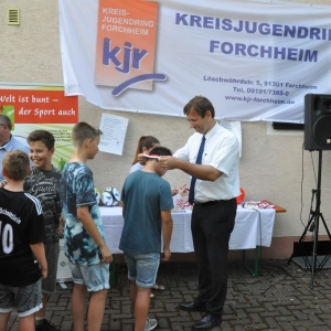 Kreisjugendpflegerin Stefanie Schmitt spricht ein ganz herzliches „Dankeschön“ an die vielen politischen Vertreter/-innen des Landkreises aus sowie insbesondere an den SV Ermreuth und seinen zahlreichen fleißigen Helfer/-innen und den Kreisspieleitern, die das ganze Turnier im Hintergrund organisierten.