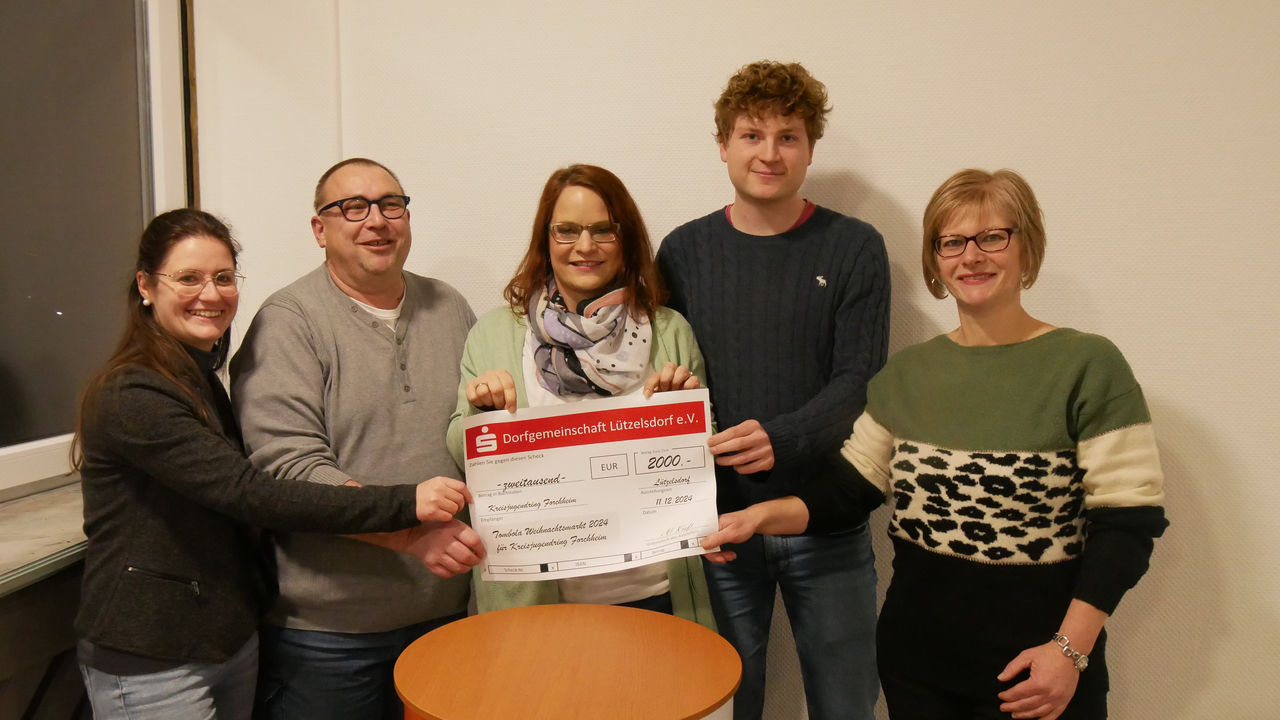 Zwischen Plätzchenduft, Glühwein und Weihnachtsmusik gab es jede Menge Lose für den guten Zweck. Die Dorfgemeinschaft Lützelsdorf e.V. hat auch dieses Jahr wieder einen Weihnachtsmarkt im Ort mit einer Tombola veranstaltet. Insgesamt kamen durch den Verkauf der Tombola-Lose und großzügige Spenden von ortsansässigen Betrieben 2.000 € zusammen. Der Erlös in diesem Jahr kommt dem inklusiven Zirkusprojekt „Zirkus Schnauz" des Kreisjugendrings Forchheim zugute.