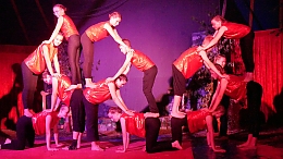 Während am Anfang der Woche nasses Wetter und kalte Temperaturen herrschten, zeigte das Thermometer am Ende der Woche über 30 Grad an, was die Zirkusbesucherinnen und -besucher im großen Zirkuszelt zum Schwitzen brachte. Allerdings überwog das Staunen über das Erlernte der 50 Artistinnen und Artisten, die eine Woche lang mit den Zirkuspädagogen vom langjährigen Kooperationspartner „Circus Mumm" verschiedene Disziplinen einstudierten und eine bunte Choreografie darboten. Von der anfangs herrschenden Nervosität war nichts mehr zu spüren, als die ersten Kinder die Zirkusmanege betraten. Von der ersten Minute an feuerte das Publikum die z.B. als Ritter oder Mägde verkleideten Kinder mit großem Applaus an.